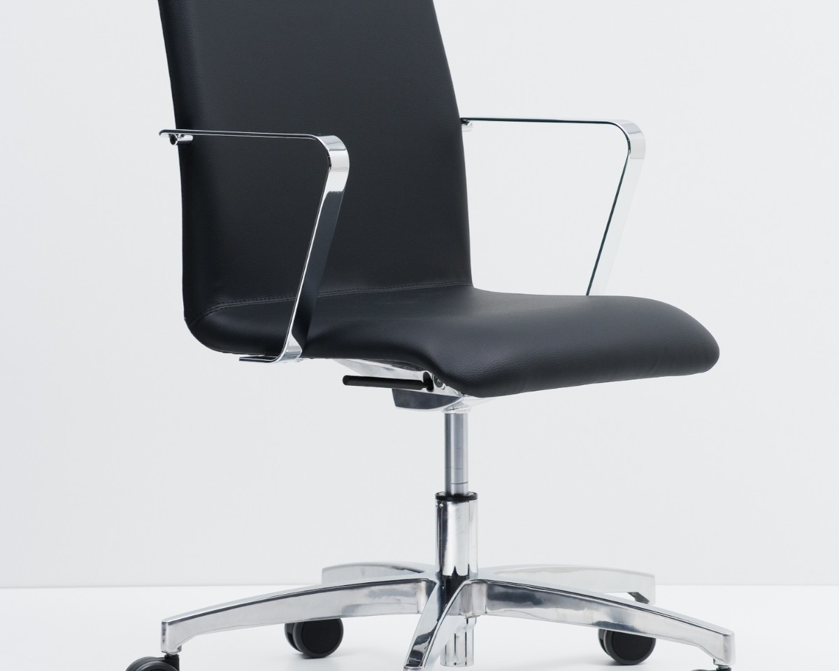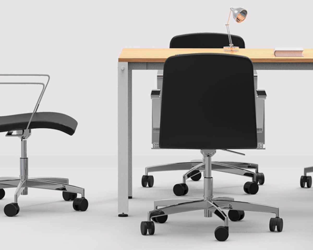 Las estructuras fijas y giratorias permiten múltiples combinaciones. Los modelos fijos metálicos, con o sin brazos, pintados en epoxi negro, blanco u otros colores, son apilables y adecuados para colectividades. Las versiones giratorias, con bases de 4 o 5 radios, ruedas o topes, ofrecen regulaciones en altura y brazos opcionales cromados o pintados. Todo ello convierte a WING 900 en la opción perfecta para espacios de trabajo, reunión, lounge, recepción o home-office.
