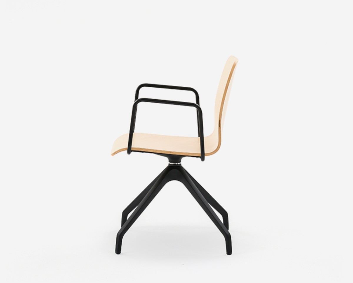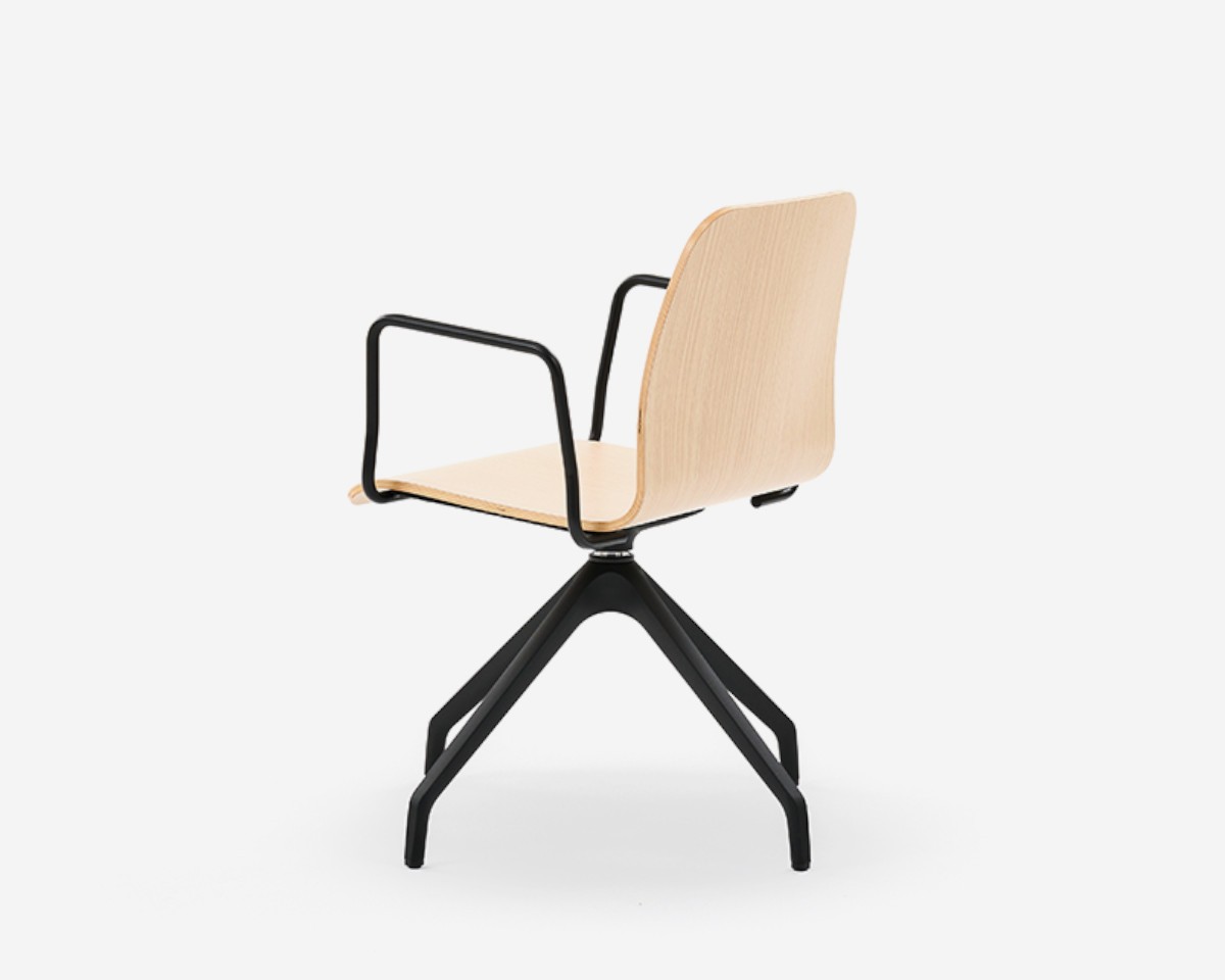 Con una carcasa continua de asiento y respaldo, posformada ergonómicamente, FLY se presenta en dos versiones: tapizada o en madera estratificada. Estas opciones se combinan con múltiples estructuras, fijas o giratorias, con o sin brazos, además de ofrecer taburetes de diferentes alturas, asientos en bancada y sillas con pala de escritura para aulas y entornos de formación.
