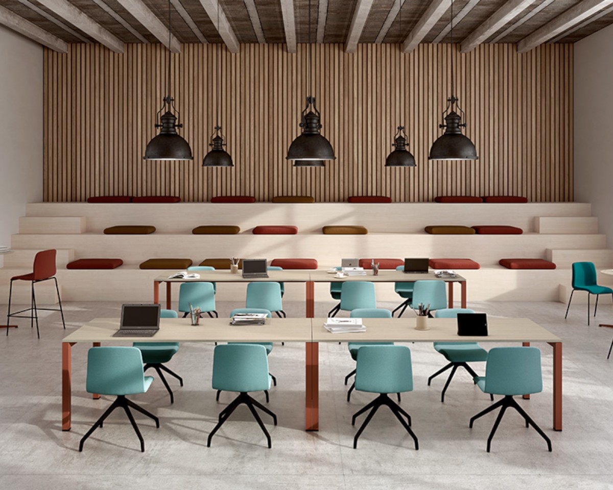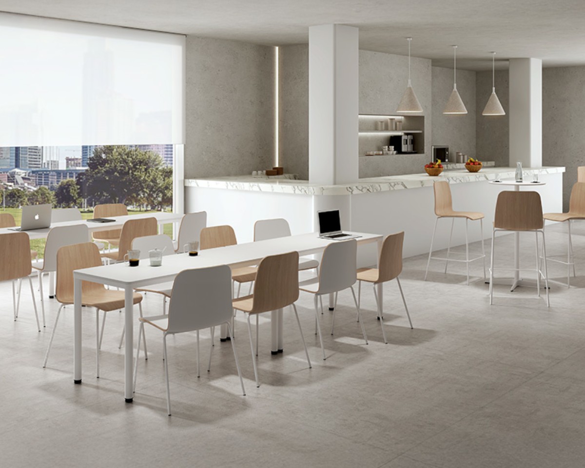 Su diseño ligero, amable y neutro se integra con armonía en cualquier contexto, desde oficinas hasta restaurantes o espacios colectivos. Las versiones fijas son apilables, optimizando espacio y aportando practicidad, mientras que la amplia gama de acabados y colores disponibles permite personalizar cada proyecto.