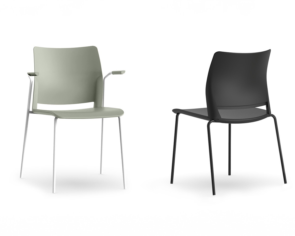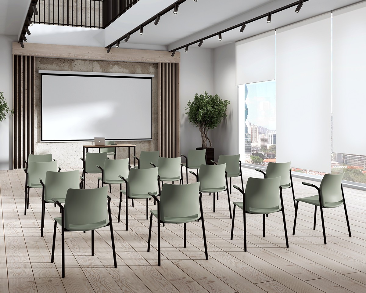SPACIO es una colección de sillas multifuncionales diseñada para adaptarse a las necesidades de los espacios contemporáneos. Su diseño ligero, funcional y apilable la convierte en la opción perfecta para entornos colectivos, de formación o colaborativos, donde la flexibilidad y el confort son esenciales.