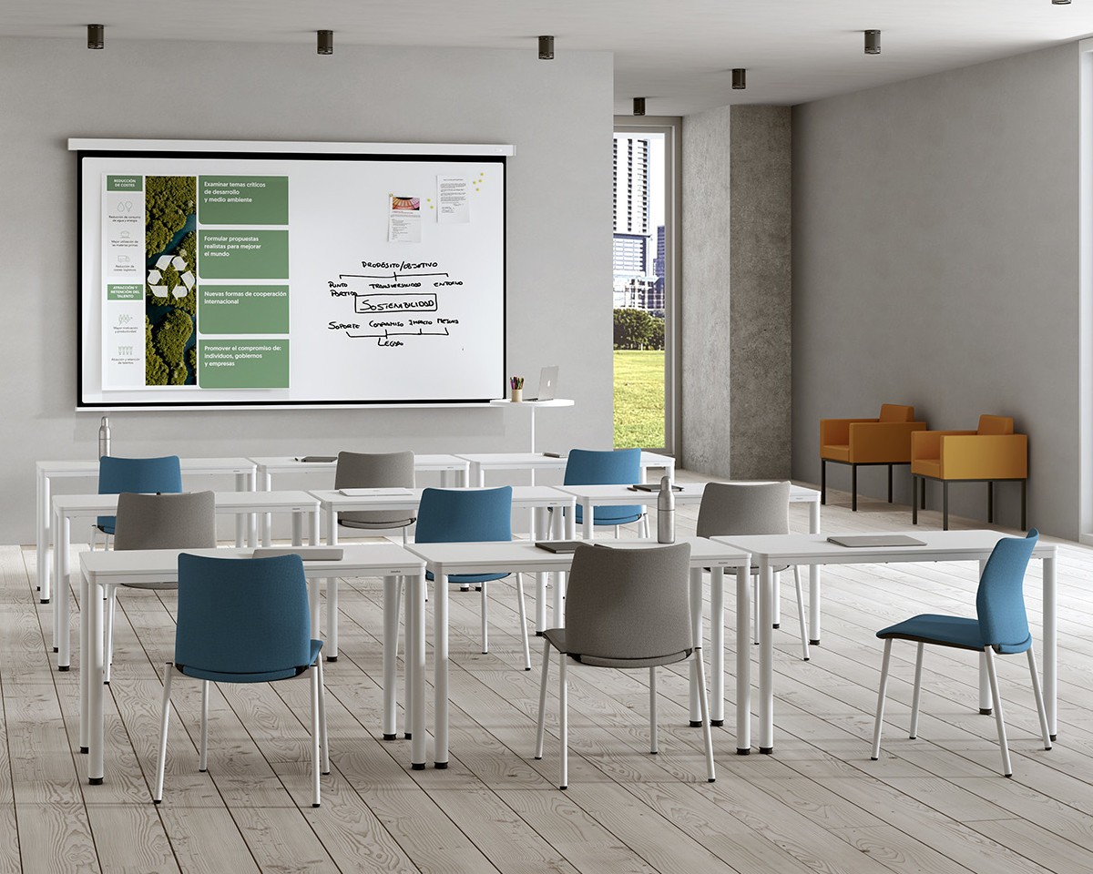 Gracias a su diseño polivalente y funcional, la colección SPACIO permite equipar cualquier tipo de espacio —desde zonas de trabajo y formación hasta recepciones y áreas de espera— garantizando siempre comodidad, durabilidad y diseño.