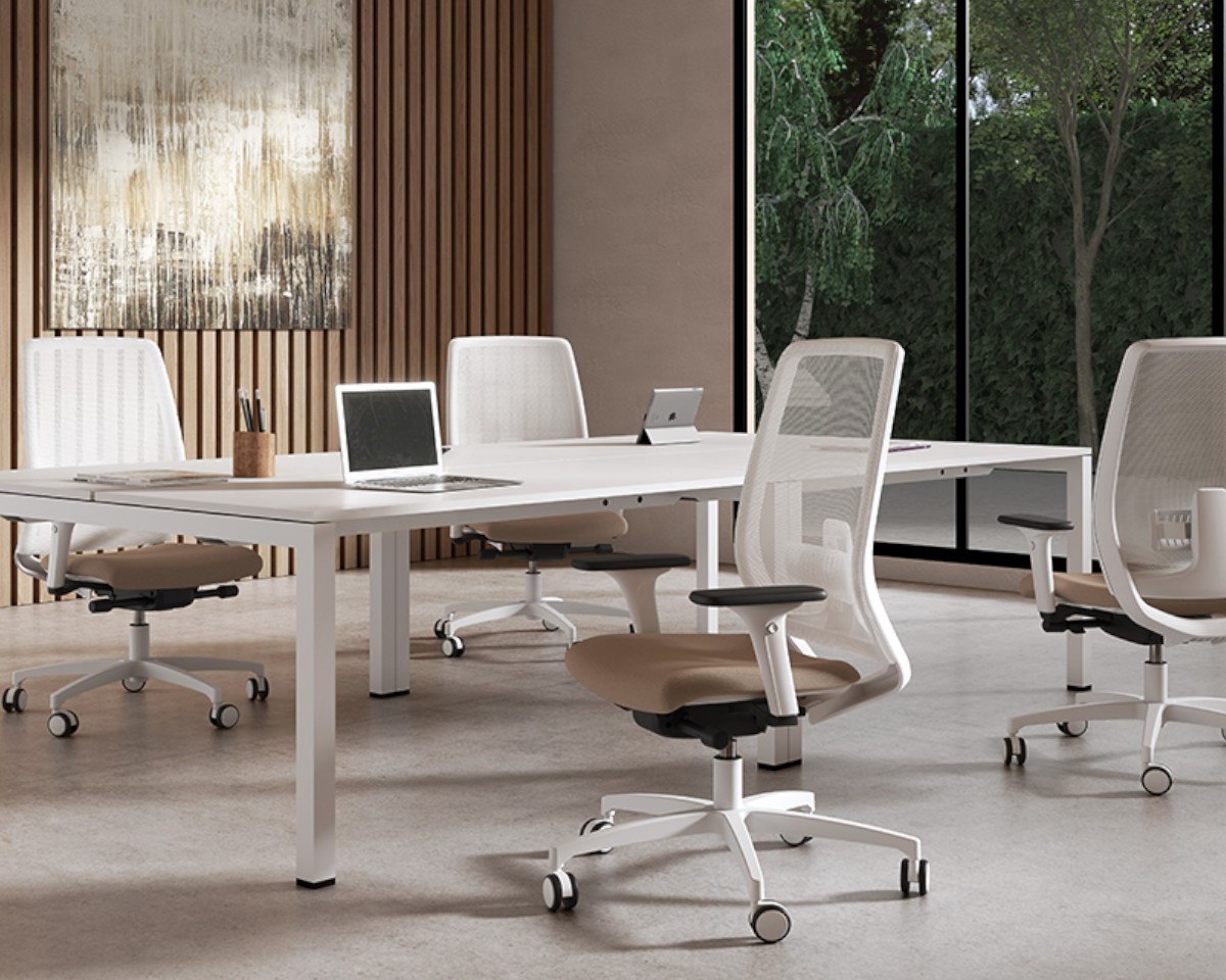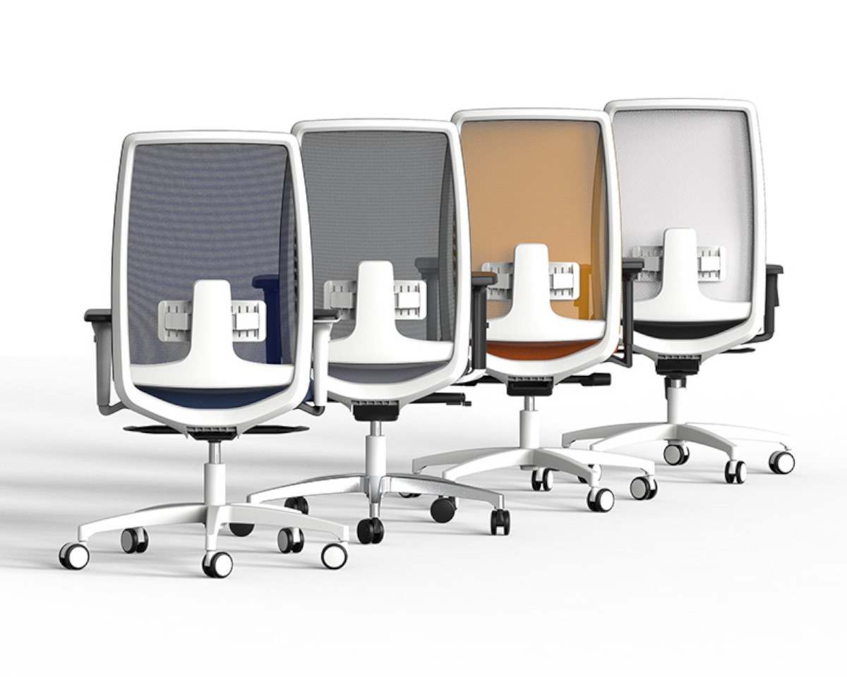 Disponible en dos versiones: blanca o negra, New Light es la elección ideal para quienes buscan una silla ergonómica, personalizable y respetuosa con el medio ambiente.