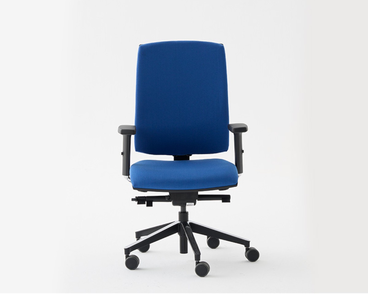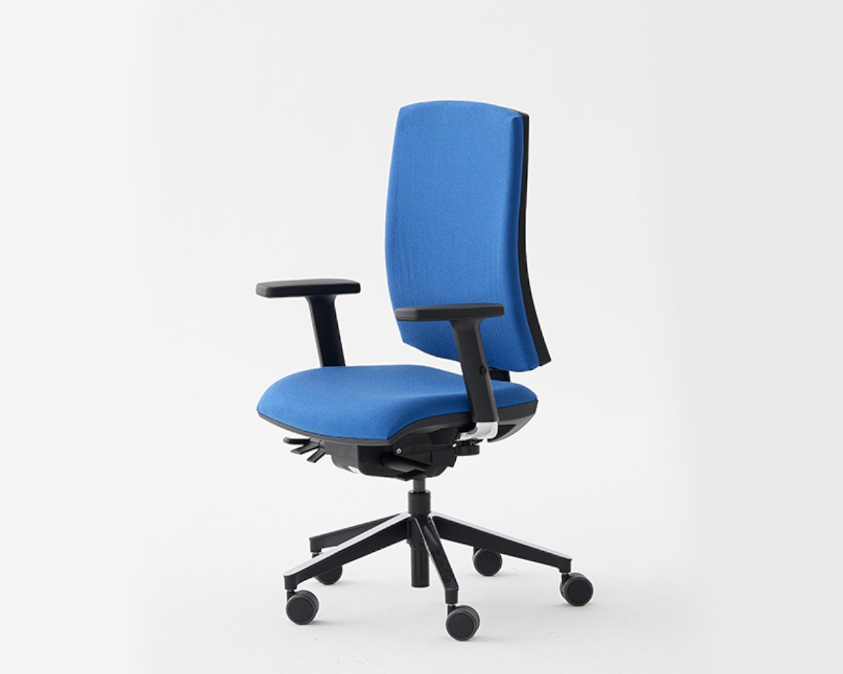 CLICK es una silla de oficina ergonómica y configurable, con respaldo tapizado, dos alturas y versiones especiales como 24h y antiestática.