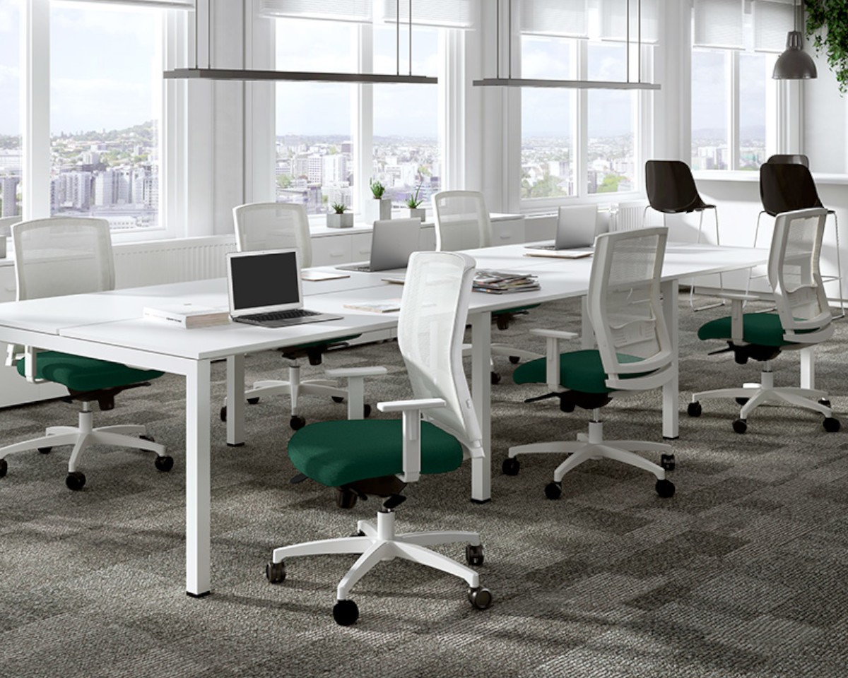 Esta colección se completa con las versiones ROYAL con respaldo tapizado y los confidentes ROYAL 15, que permiten mantener una estética unificada en todos los espacios de trabajo, desde áreas operativas hasta salas de reunión o dirección.