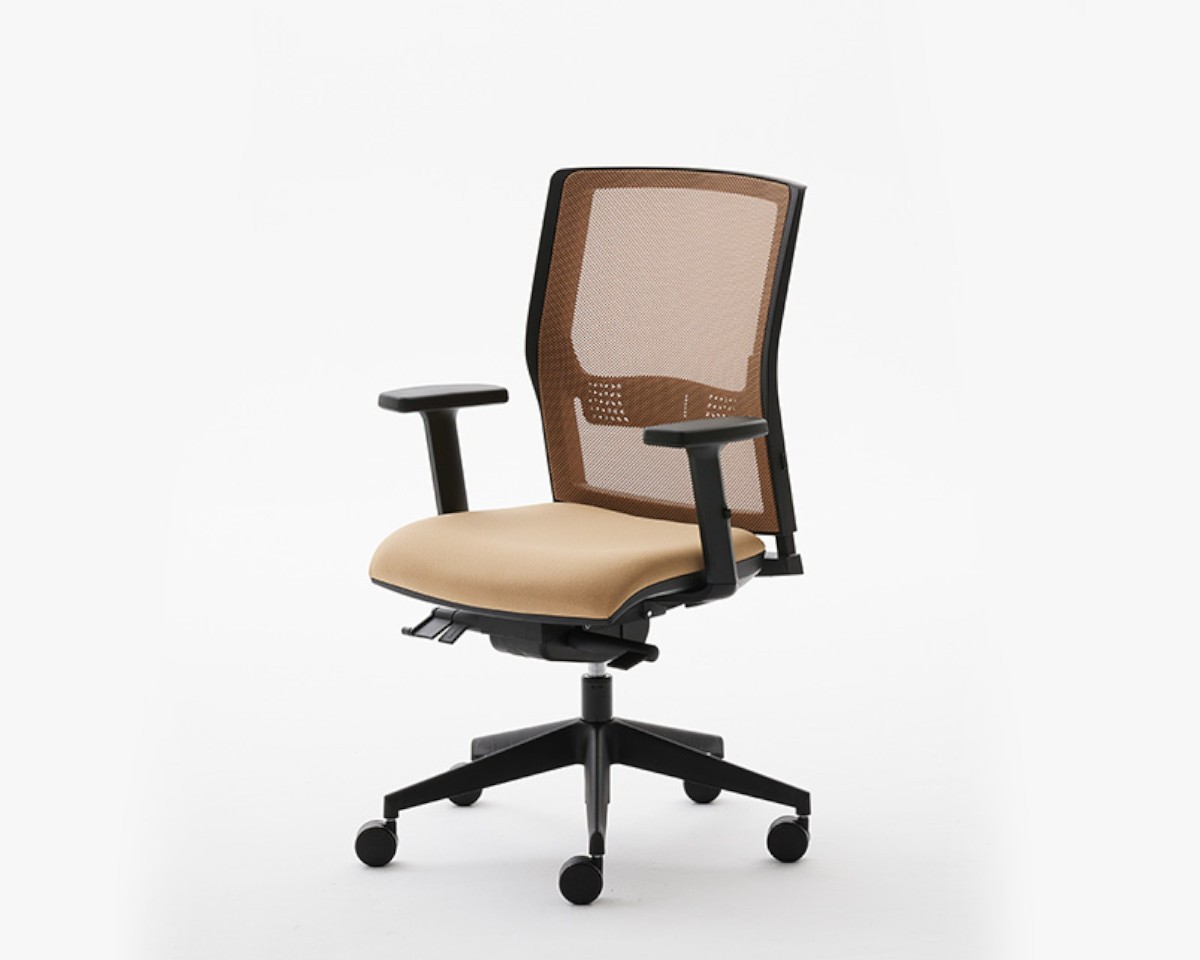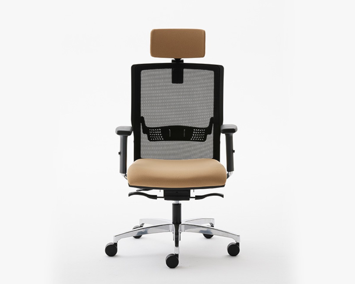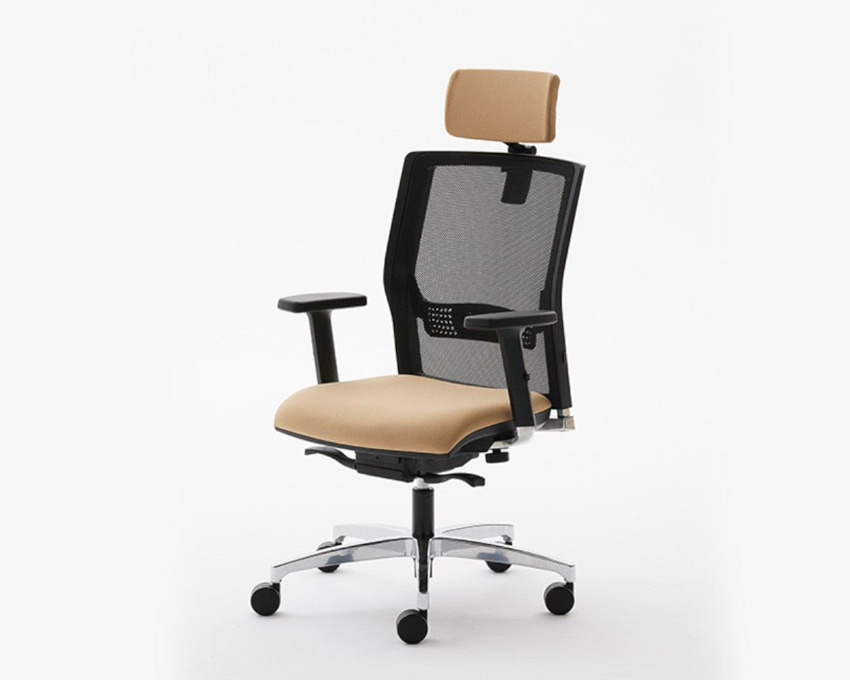 El respaldo en malla técnica ofrece una ventilación óptima y está disponible en varios colores, permitiendo que cada silla se integre con armonía en cualquier estilo de oficina. Este respaldo incorpora un marco perimetral en polipropileno libre de perforaciones, y puede incluir un cabecero adicional (tapizado o de malla) en los modelos RX.