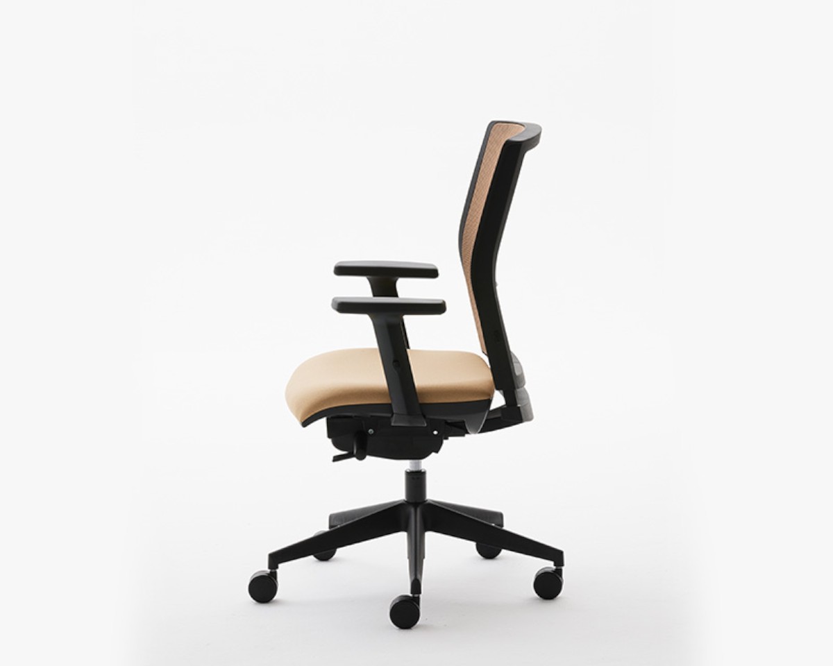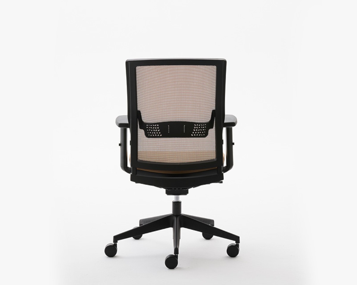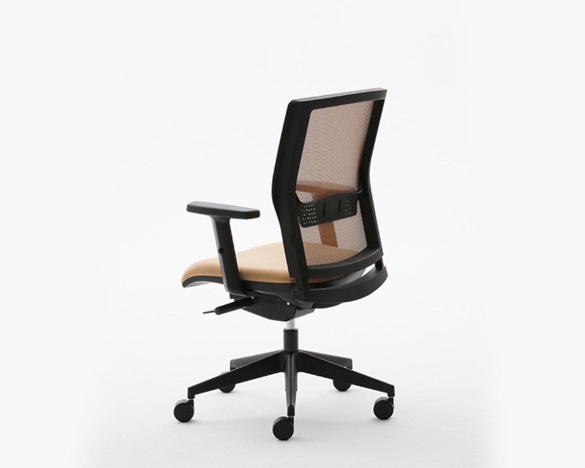 El respaldo en malla técnica ofrece una ventilación óptima y está disponible en varios colores, permitiendo que cada silla se integre con armonía en cualquier estilo de oficina. Este respaldo incorpora un marco perimetral en polipropileno libre de perforaciones, y puede incluir un cabecero adicional (tapizado o de malla) en los modelos RX.