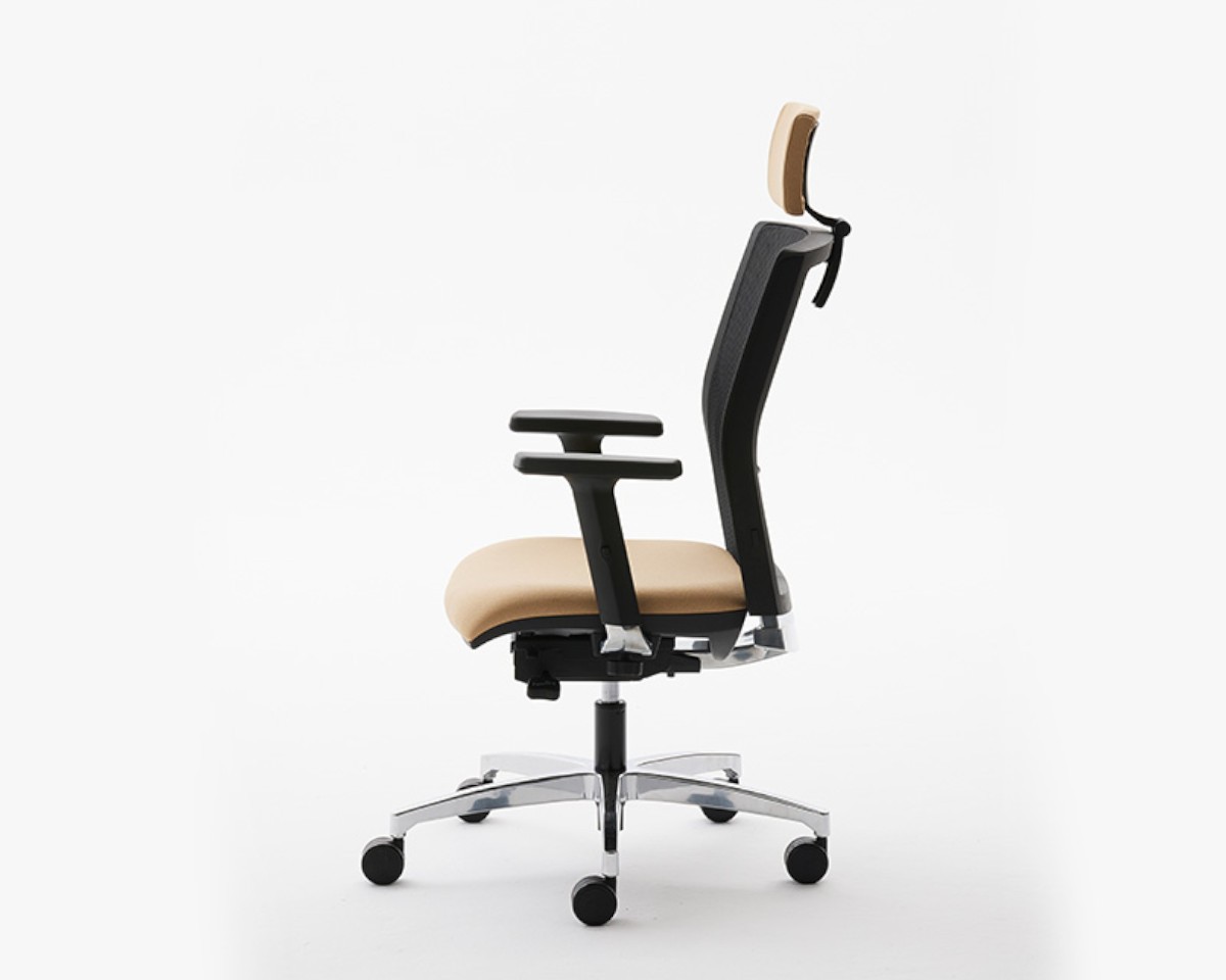 ROYAL MALLA se puede configurar con distintos modelos de brazos fijos o regulables, bases de aluminio pulido o de poliamida con fibra de vidrio, y mecanismos avanzados como sincro auto pesante o 24 horas con trasla. También puede integrar el innovador Shift System, que acompaña los movimientos del cuerpo para mejorar la postura y el confort durante largas jornadas laborales.