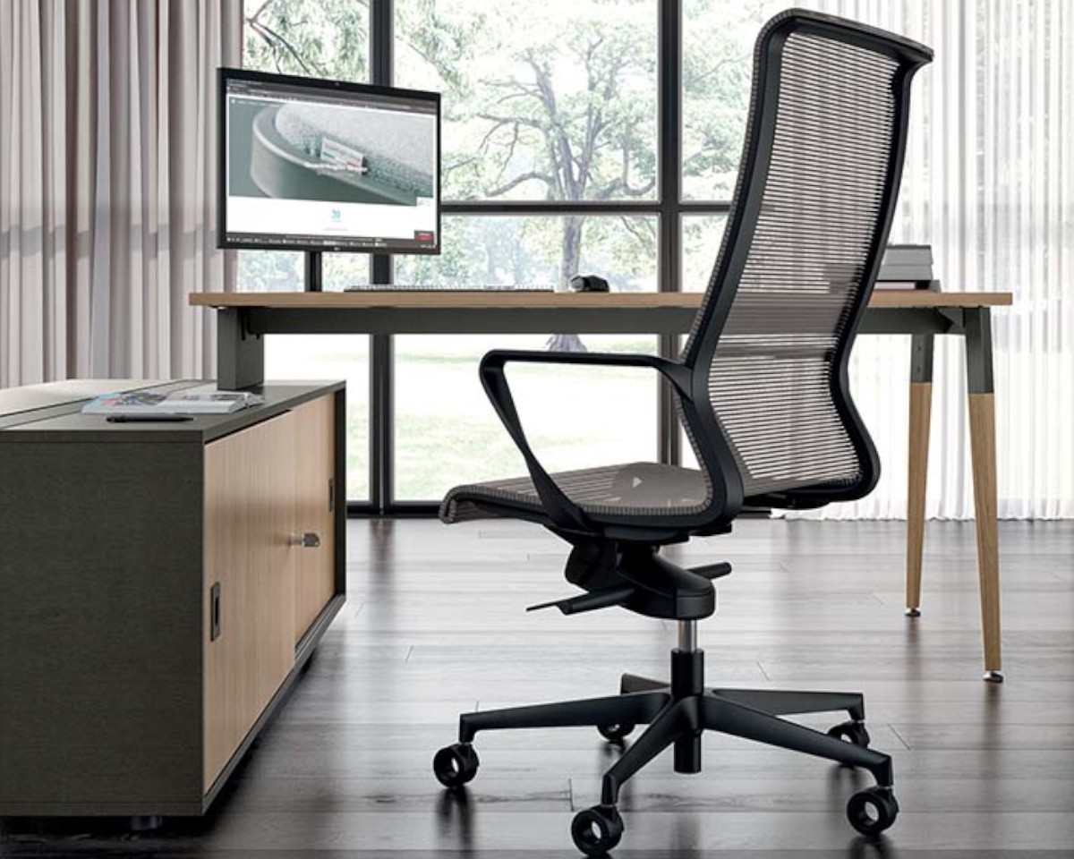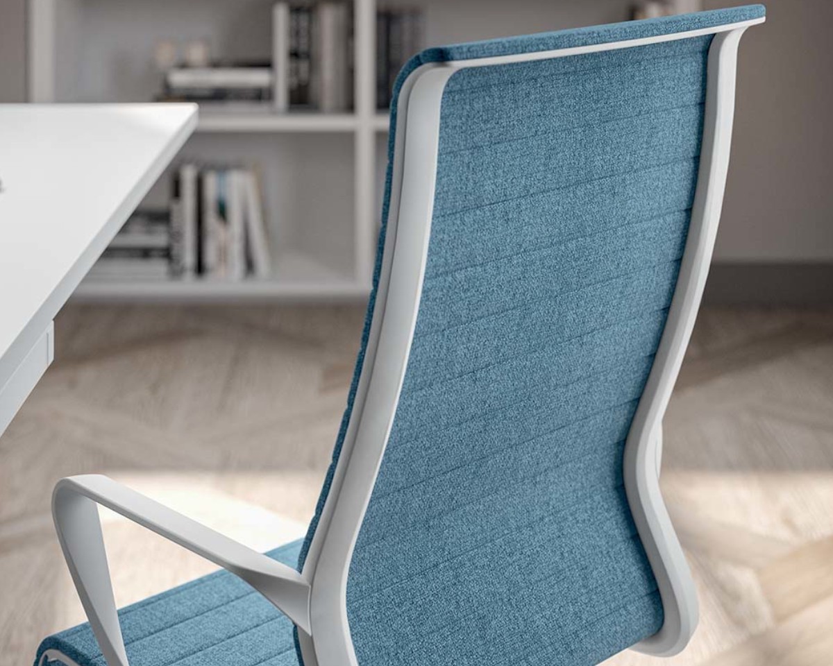 El diseño de Dinamica apuesta por una línea minimalista y moderna, reinterpretando la silueta clásica de la silla ejecutiva con un estilo distintivo, reforzado por detalles como el acolchado visible que atraviesa su estructura. Su presencia discreta pero con carácter se adapta perfectamente a oficinas donde se valora tanto la funcionalidad como el diseño.