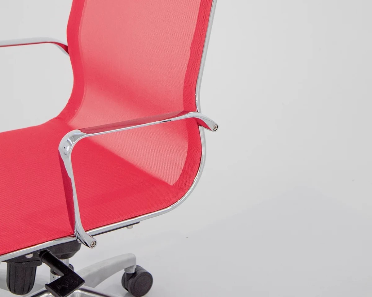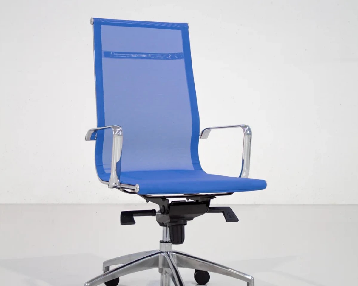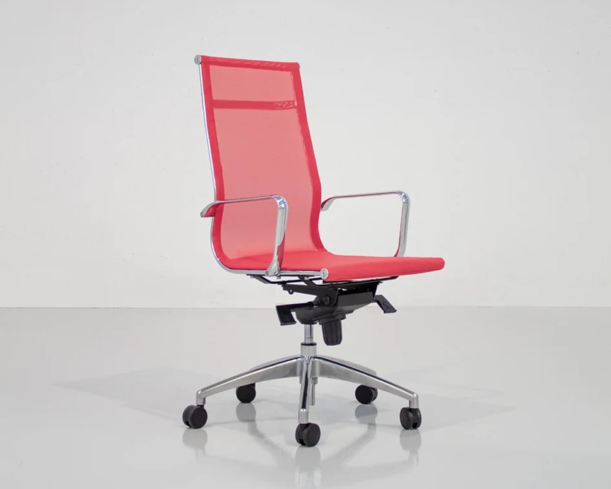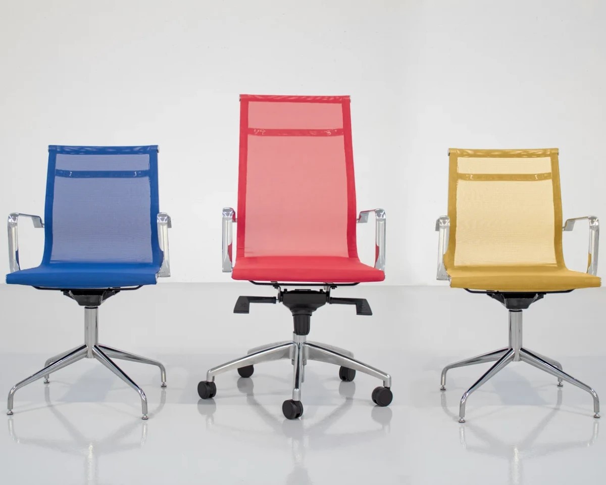 Beta Color es una silla ejecutiva con diseño moderno, colores vibrantes y estructura cromada. Disponible con respaldo medio o alto.