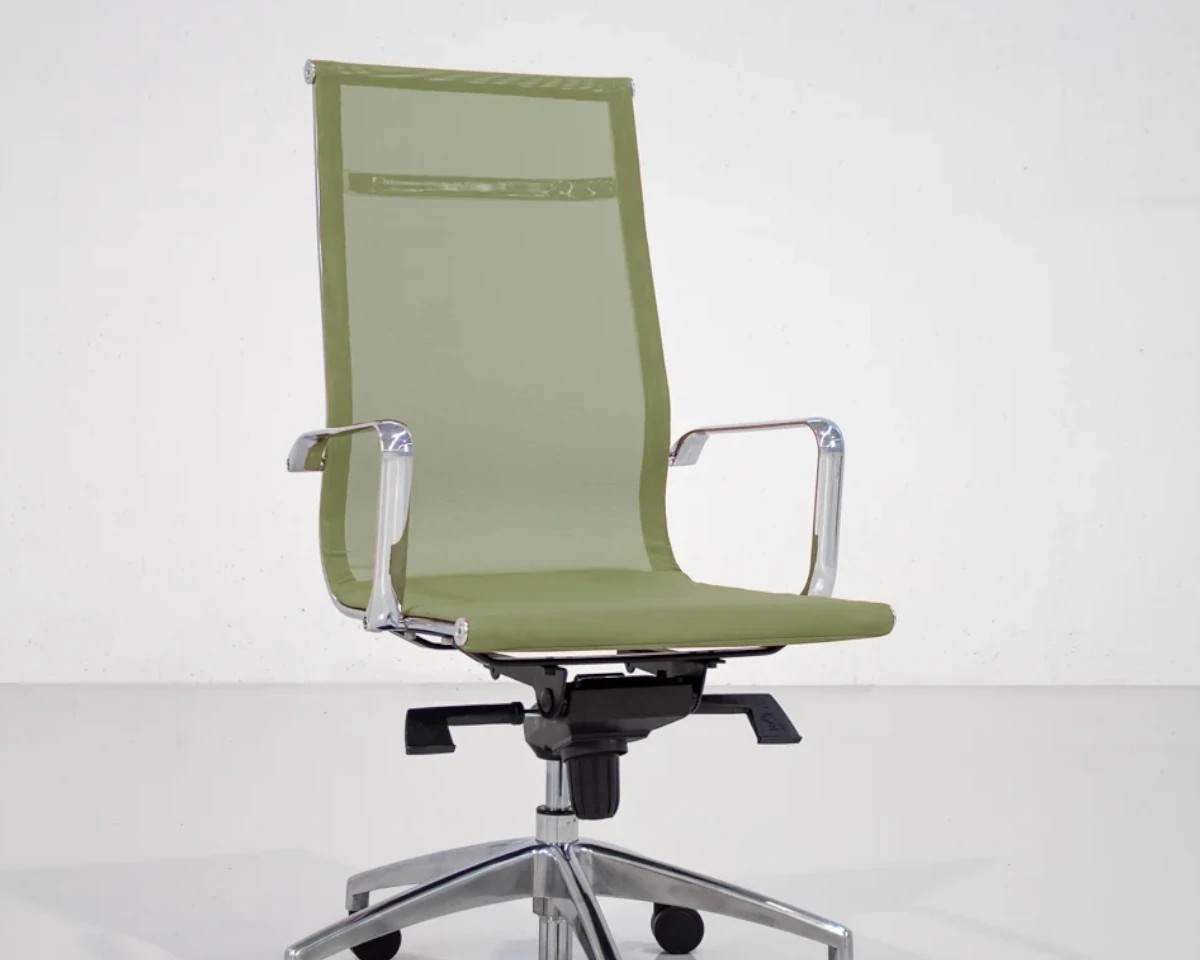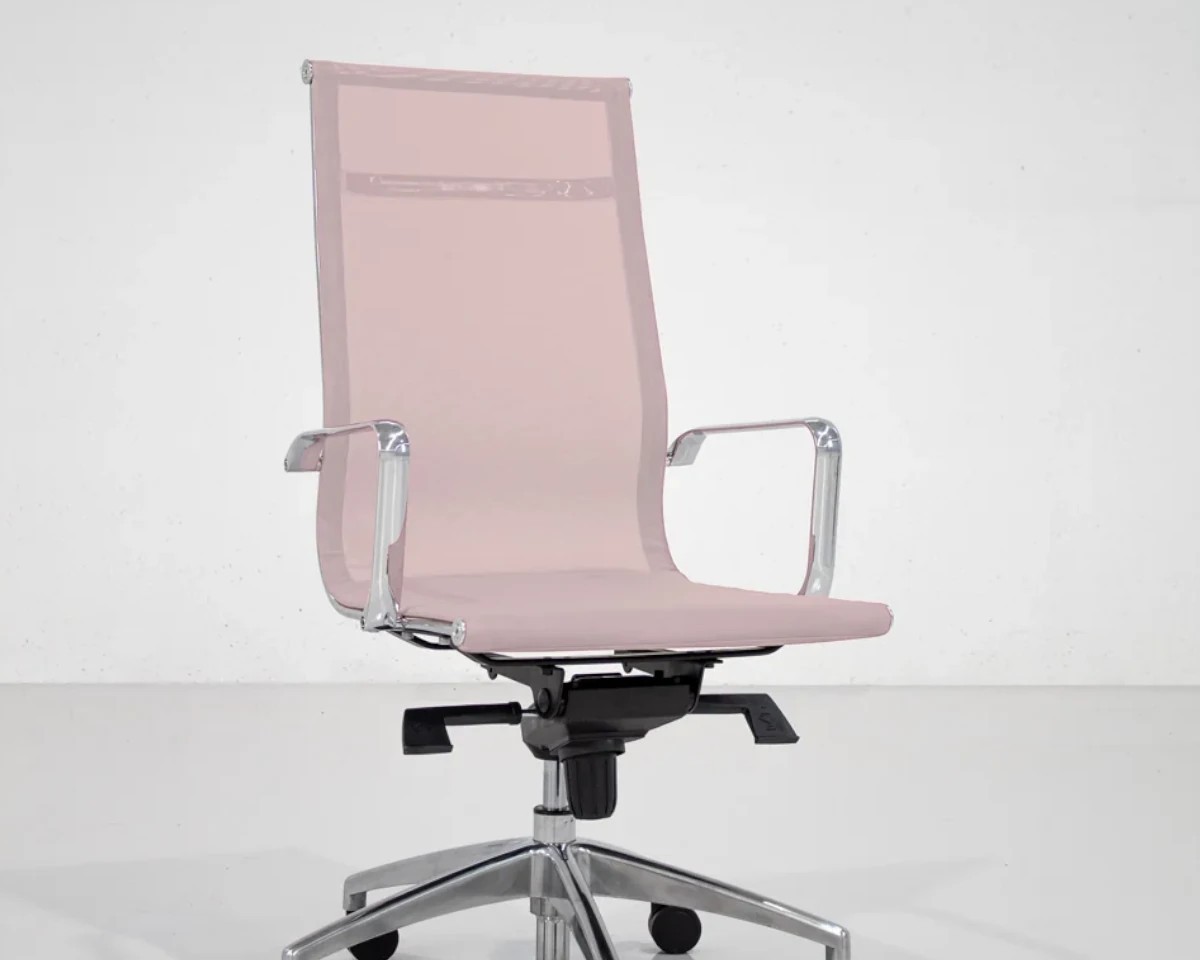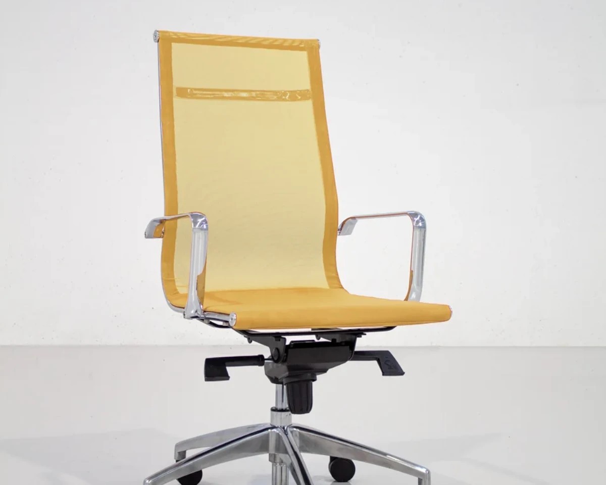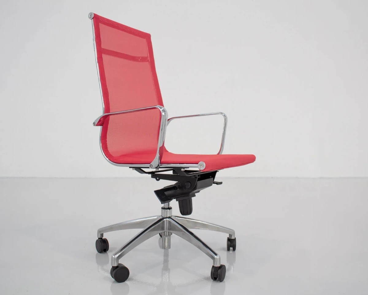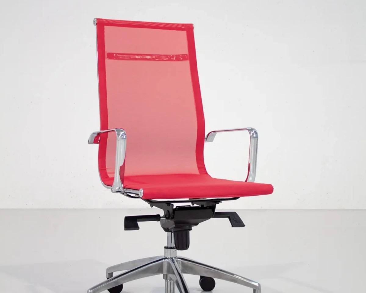 Beta Color es una silla ejecutiva con diseño moderno, colores vibrantes y estructura cromada. Disponible con respaldo medio o alto.